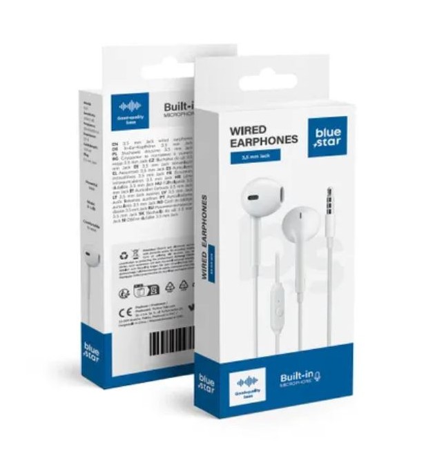 ÉCOUTEURS FILAIRES BLUE STAR JACK 3,5 MM AVEC MICROPHONE PA-E65 1,2 M BLANC