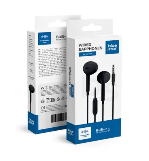 ÉCOUTEURS FILAIRES BLUE STAR JACK 3,5 MM AVEC MICROPHONE PA-E65 1,2 M NOIR