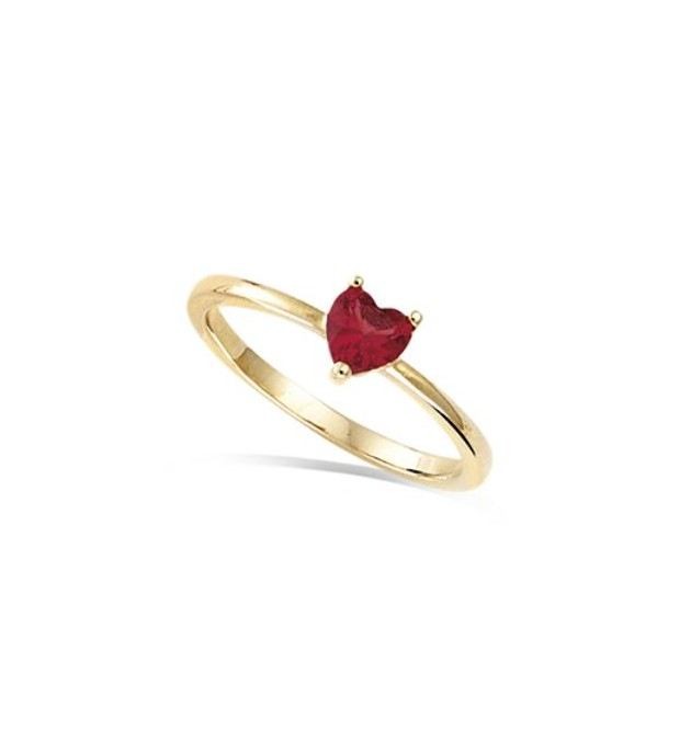 T54 BAGUE EN PLAQUE OR COEUR ROUGE TAILLE 54