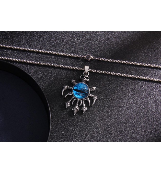 COLLIER ACIER OEIL ACRYLIQUE BLEU LONGUEUR 70 CM