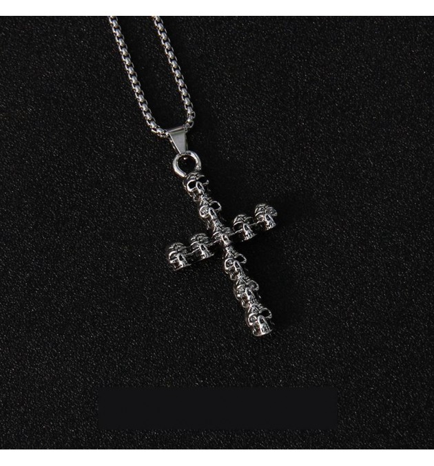 COLLIER CROIX TÊTES DE MORT LONGUEUR 70 CM